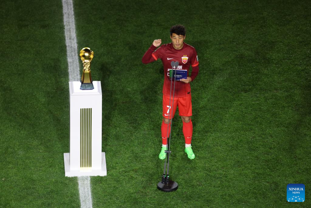 Wu Lei takes an oath on behalf of the athletes during the opening ceremony of the 2024 season Chinese Football Association Super League (CSL) in Shanghai, east China, March 1, 2024. (Photo by Hai Shaer/Xinhua)