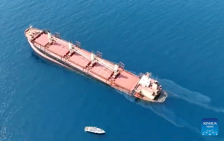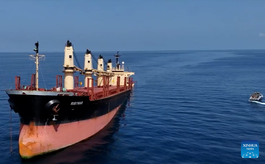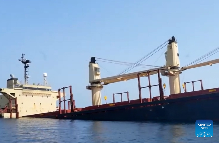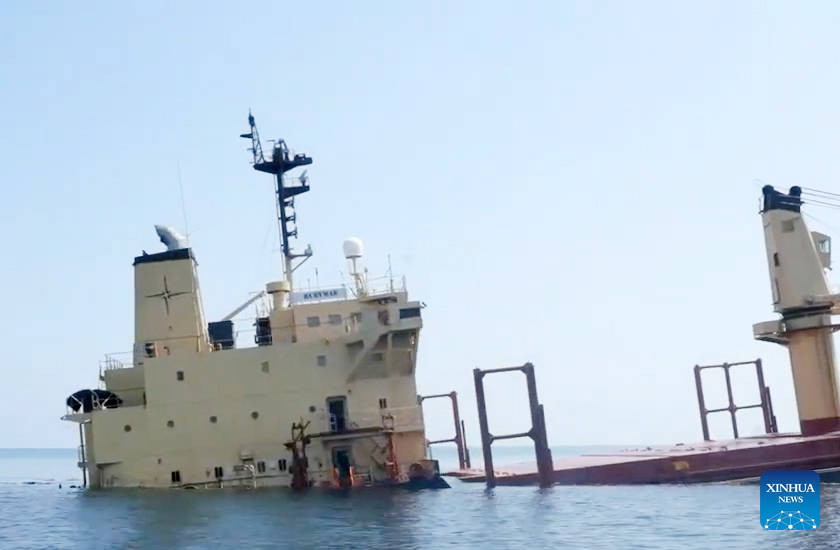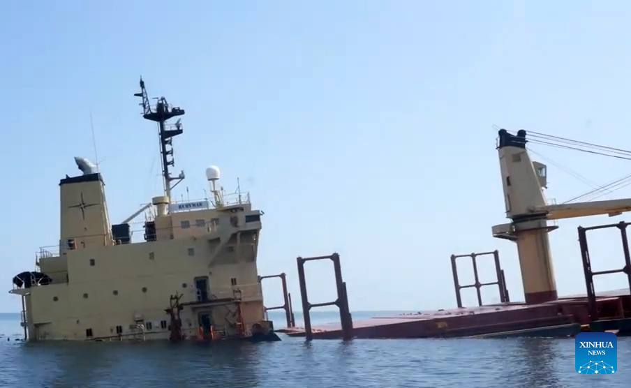 The British-owned, Belize-flagged ship carries thousands of tons of fertilizer and oil. The government expressed regret over the sinking, warning against a possible major environmental disaster in Yemen's territorial waters. (Xinhua)