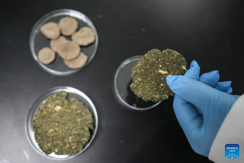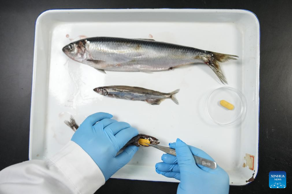 Dr. Luo Jun puts nutrition substance into food for spotted seals at Dalian Sunasia Marine Biology Institute in Dalian, northeast China's Liaoning Province, Feb. 28, 2024. (Xinhua/Pan Yulong)