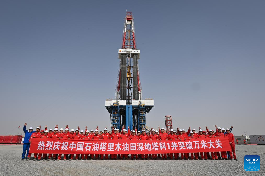 URUMQI, March 4 (Xinhua) -- The drilling of a superdeep borehole in northwest China's Xinjiang Uygur Autonomous Region reached 10,000 meters at 2:48 p.m. Monday and is going deeper, marking a breakthrough in the country's deep-Earth exploration.
