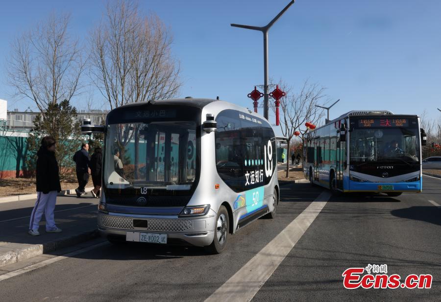 Beijing's sub-center launched autonomous driving buses with a maximum of 9 passengers around three major cultural buildings - Beijing Performing Arts Center, Beijing Library, and the Grand Canal Museum of Beijing on Sunday.