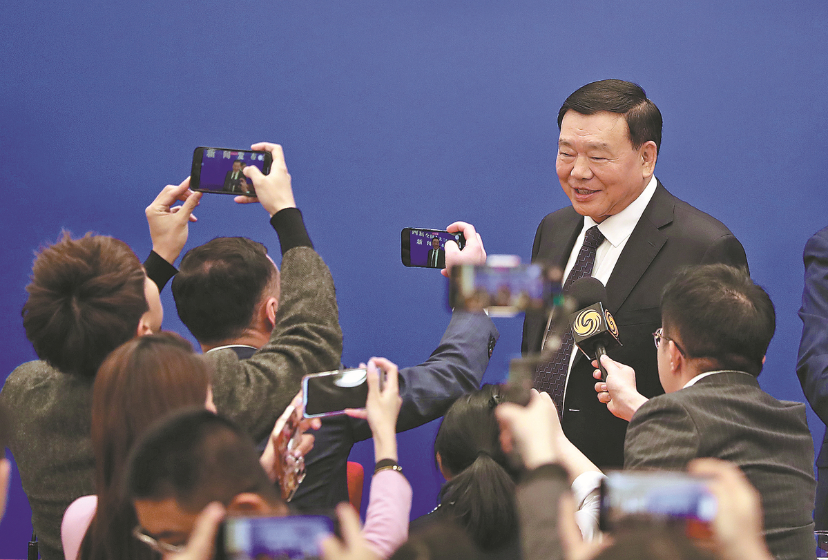 Lou Qinjian, spokesman for the second session of the 14th National People's Congress, attends a news conference and briefs the media on the session. [ZHANG WEI/CHINA DAILY]