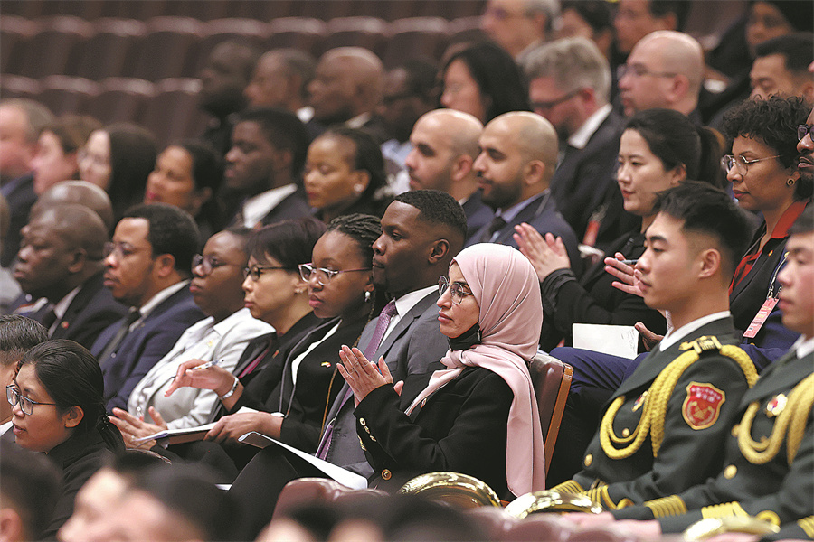 Foreign envoys attend the second session of the 14th National Committee of the Chinese People's Political Consultative Conference, which opened at the Great Hall of the People in Beijing on Monday. [WANG JING/CHINA DAILY]
