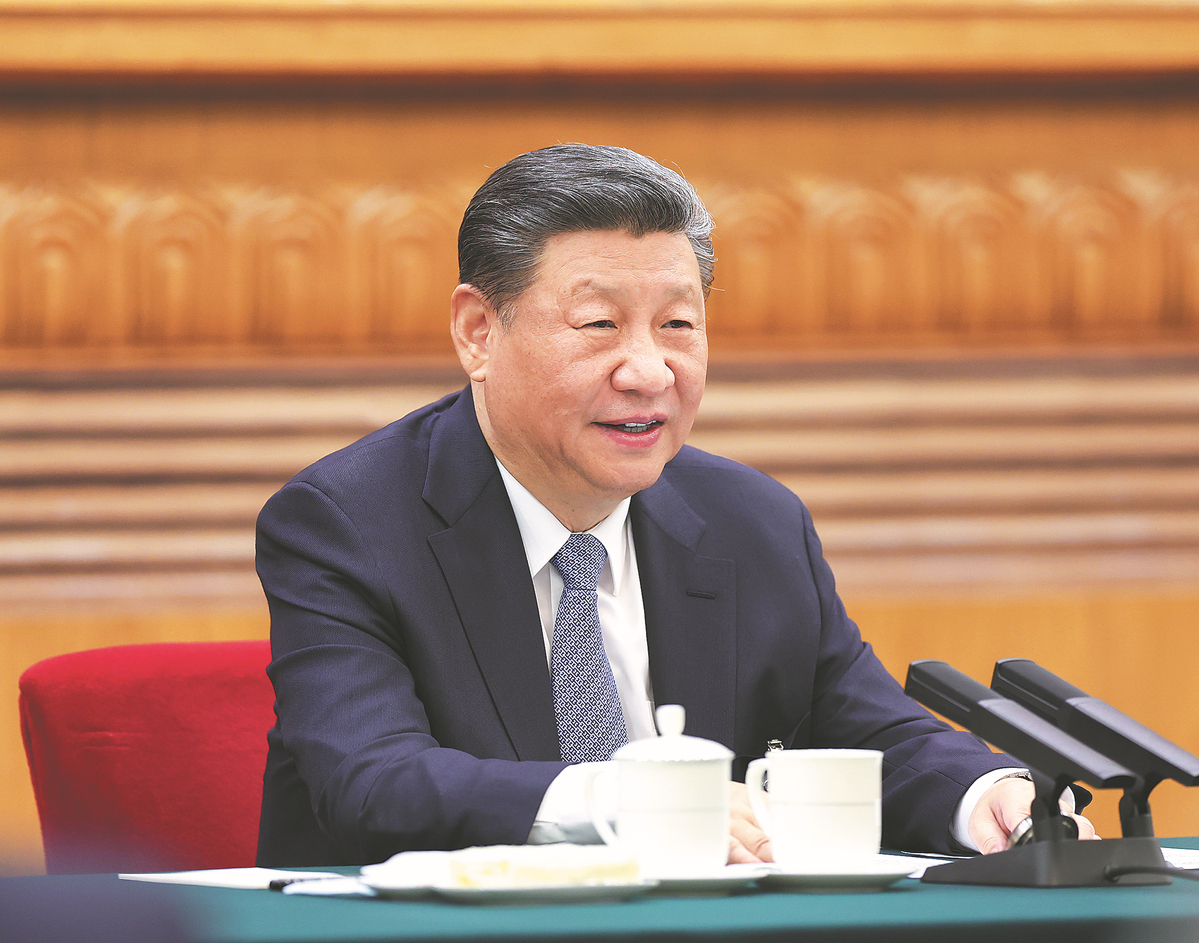 President Xi Jinping takes part in a deliberation on Tuesday with his fellow deputies from the delegation of Jiangsu province at the second session of the 14th National People's Congress in Beijing. [Photo/Xinhua]