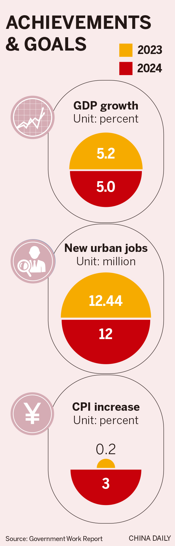 China has set an annual economic growth target of around 5 percent for 2024, unchanged from the previous year and a goal that analysts and executives said is feasible, as the country maps out intensified and targeted macro support policies to anchor the world's second-largest economy and contribute to global economic recovery.