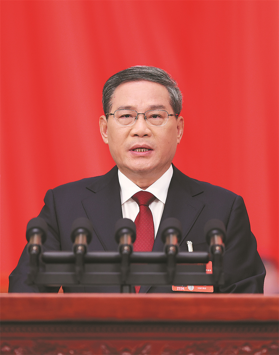 Premier Li Qiang delivers the Government Work Report at the meeting. [Photo/Xinhua]