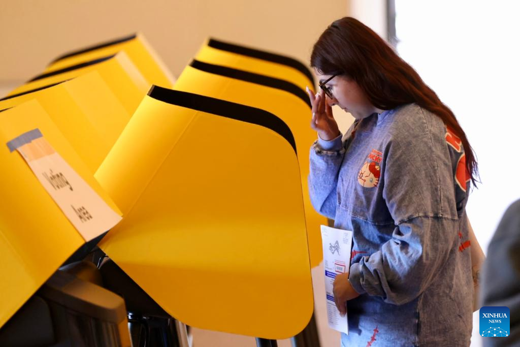 Voters cast ballots at a voting center in Los Angeles County, California, the United States, on March 5, 2024. Polls begin to open in more than a dozen U.S. states on the so-called "Super Tuesday" as part of the 2024 presidential primaries, with voters concerned about the leading candidates of both parties. (Xinhua)