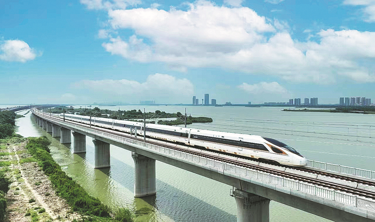 A high-speed train runs on the second Shanghai-Nanjing intercity high-speed railway on Sept 28, 2023, the first operating day of the railway. CHINA DAILY