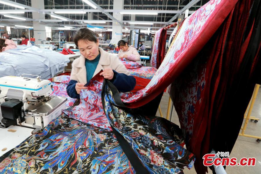 Employees work at a garment factory in Caoxian County, east China's Shandong Province, March 4, 2024. (Photo: China News Service/Liang Ben)