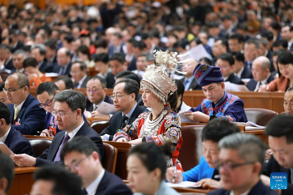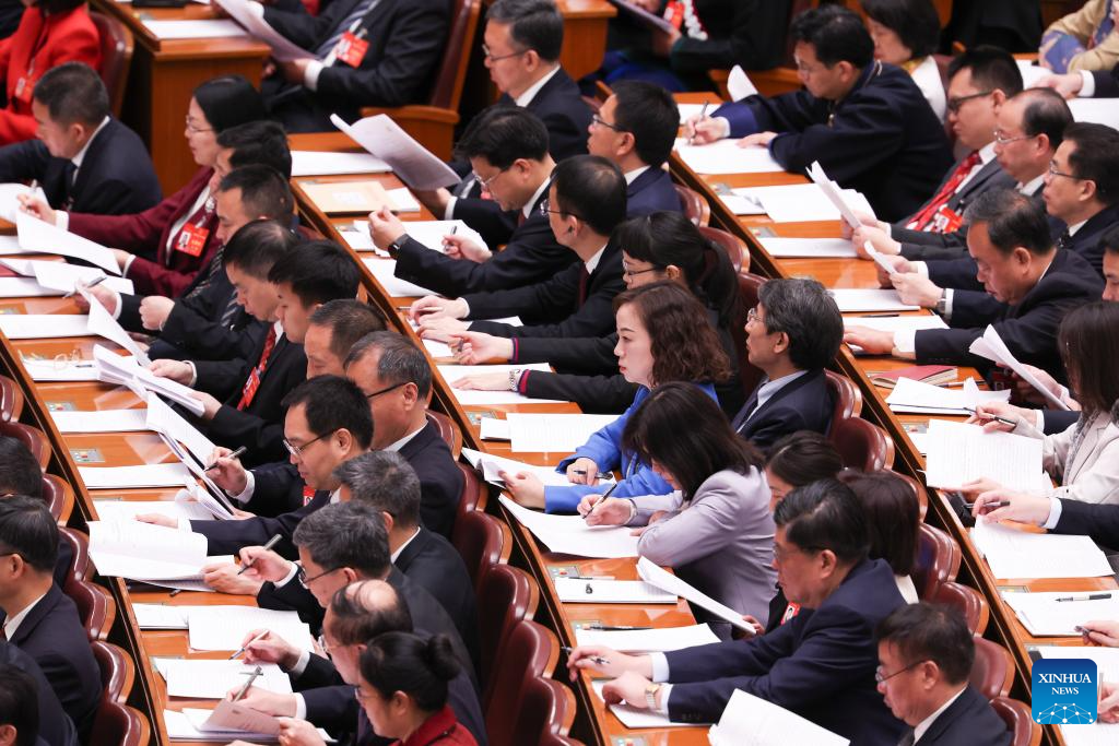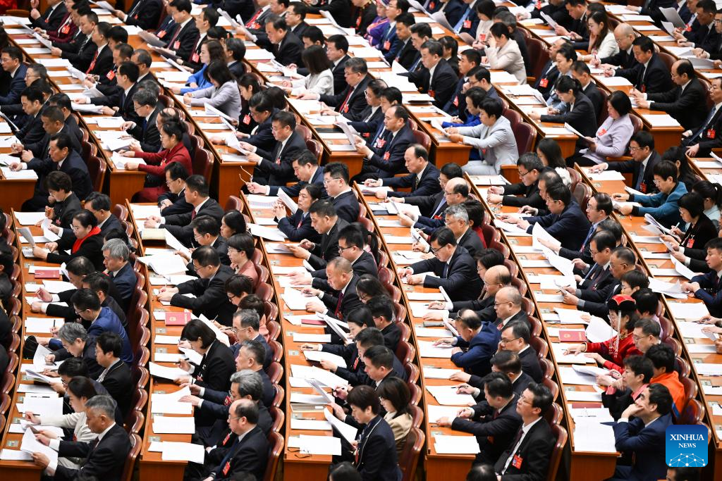 Deputies to the 14th National People's Congress (NPC) attend the second plenary meeting of the second session of the 14th NPC at the Great Hall of the People in Beijing, capital of China, March 8, 2024. (Xinhua/Liu Weibing)