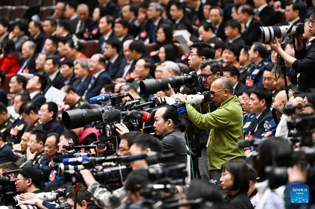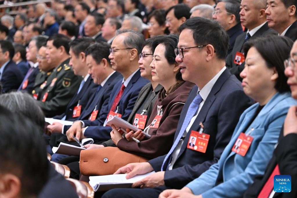 Members of the National Committee of the Chinese People's Political Consultative Conference (CPPCC) sit in on the second plenary meeting of the second session of the 14th National People's Congress (NPC) as non-voting participants at the Great Hall of the People in Beijing, capital of China, March 8, 2024. (Xinhua/Li Xin)
