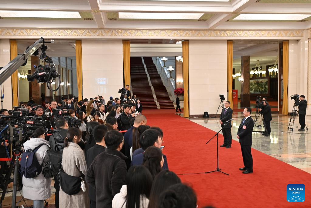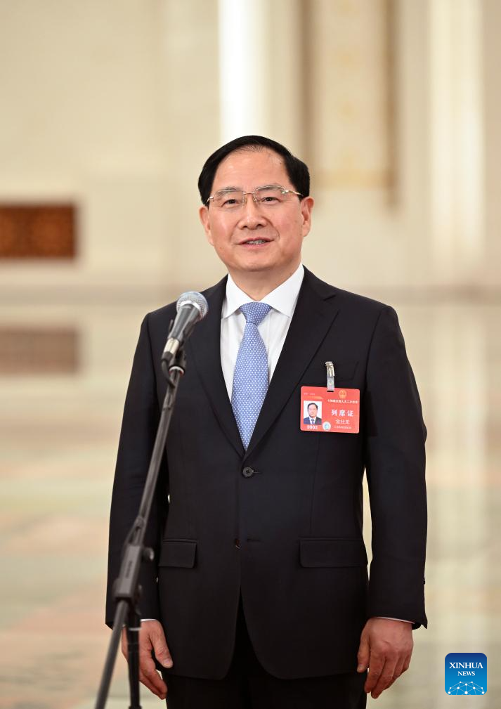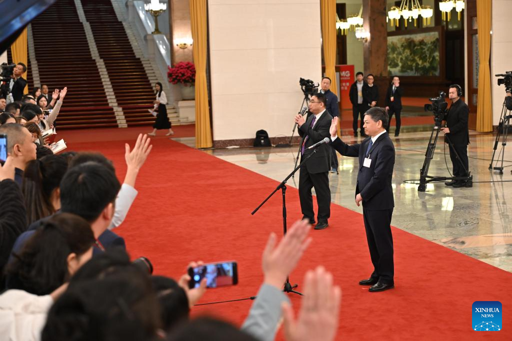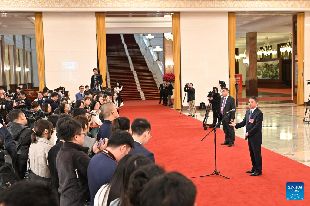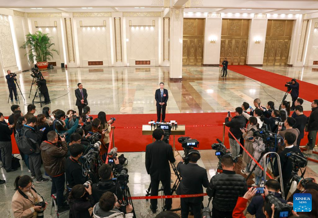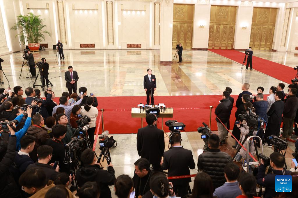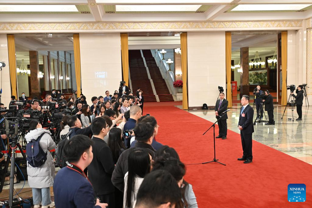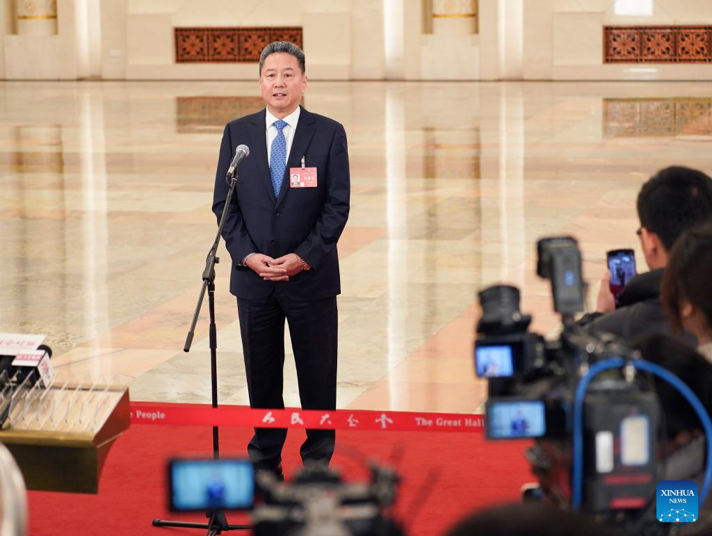 Head of the State Administration for Market Regulation Luo Wen gives an interview after the second plenary meeting of the second session of the 14th National People's Congress (NPC) at the Great Hall of the People in Beijing, capital of China, March 8, 2024. (Xinhua/Mu Yu)