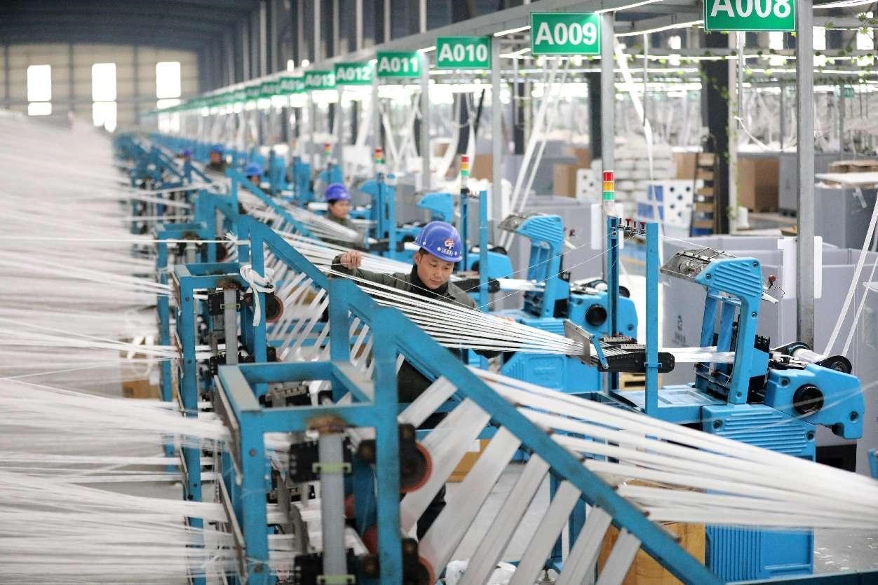 Photo shows an intelligent textile production line of a special textile producer in Huai'an, east China's Jiangsu province. (People's Daily Online/Yin Chao)