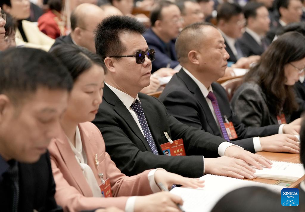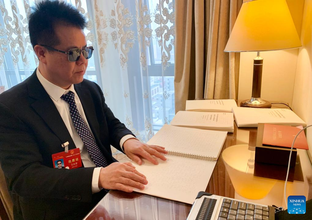Among the nearly 3,000 deputies to the 14th NPC who commenced their five-year term in 2023, Wang stands out as the sole individual with visual impairment.