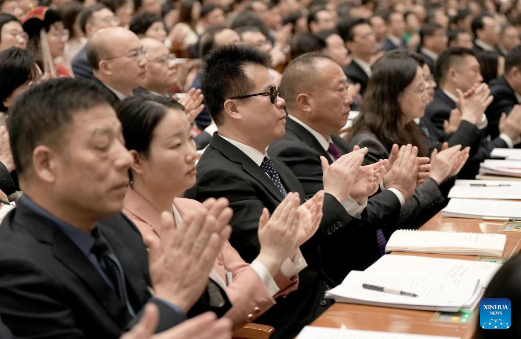Wang Yongcheng (C), a deputy to the 14th National People's Congress (NPC), attends the opening meeting of the second session of the 14th NPC at the Great Hall of the People in Beijing, capital of China, March 5, 2024. (Xinhua/Wang Yuguo)