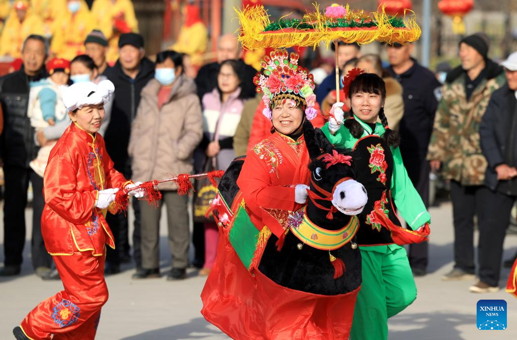Folk artists perform in Yudi Village of Shijiazhuang, north China's Hebei Province, March 11, 2024. (Photo by Liang Zidong/Xinhua)