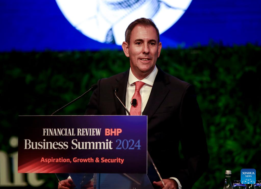 Australian Treasurer Jim Chalmers addresses the Australian Financial Review Business Summit in Sydney, Australia, March 11, 2024. (Xinhua/Ma Ping)