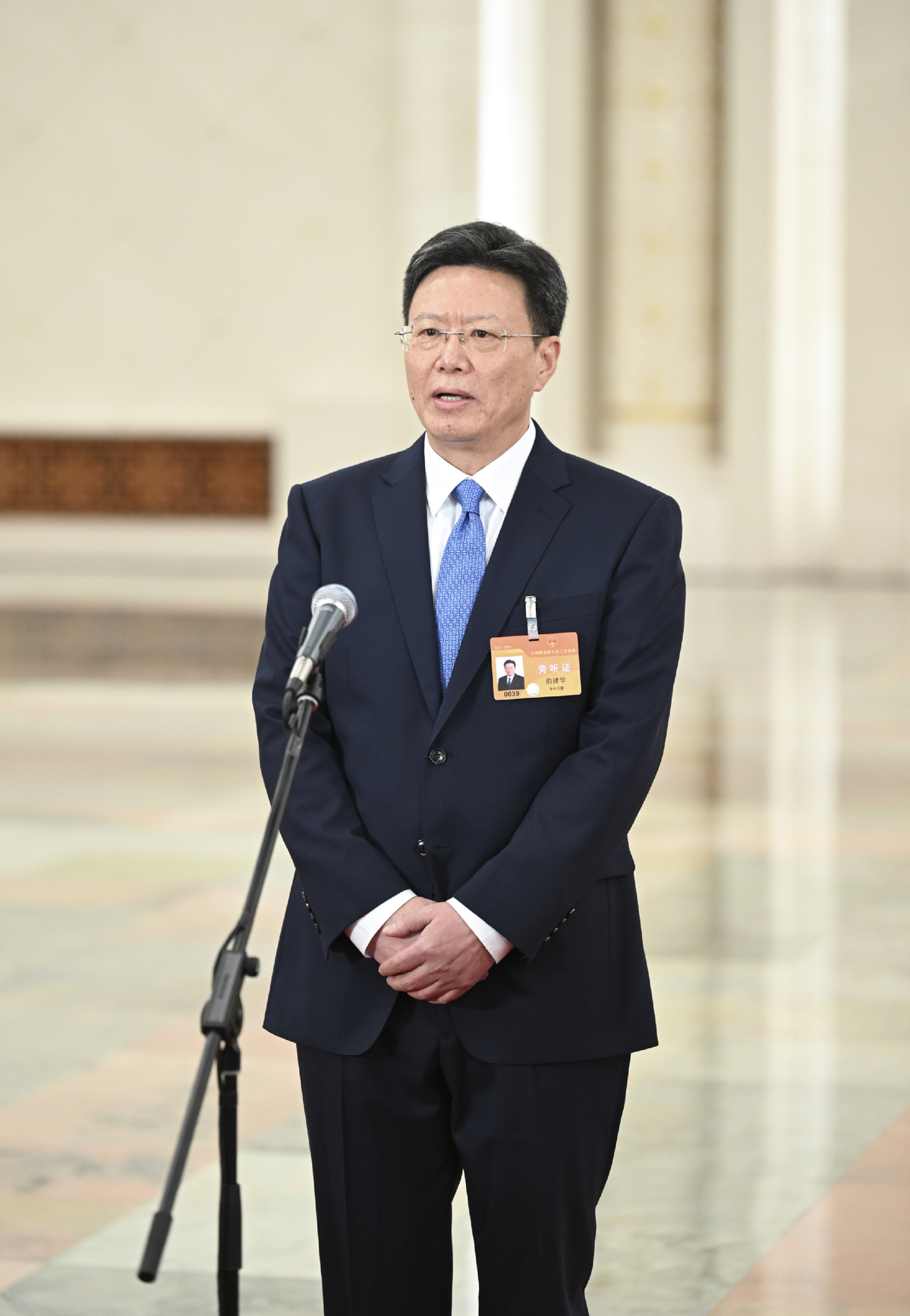 Yu Jianhua, minister of the General Administration of Customs (GAC), gives an interview after the closing meeting of the second session of the 14th National People's Congress (NPC) at the Great Hall of the People in Beijing, capital of China on March 11. [Photo/Xinhua]