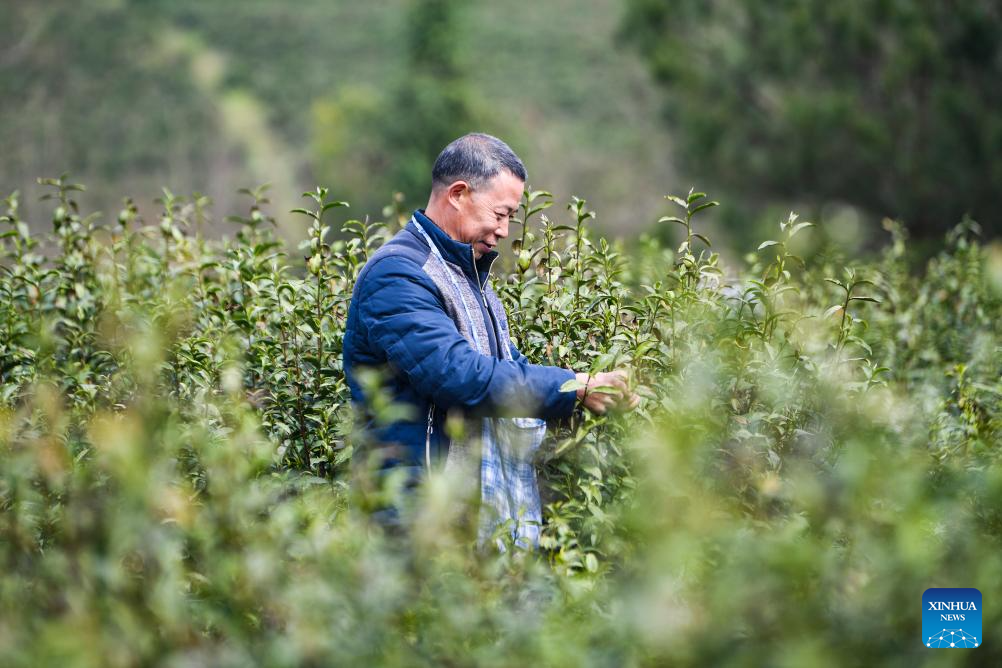Tea farmers embrace spring harvest season in Fengjie County, SW China's Chongqing