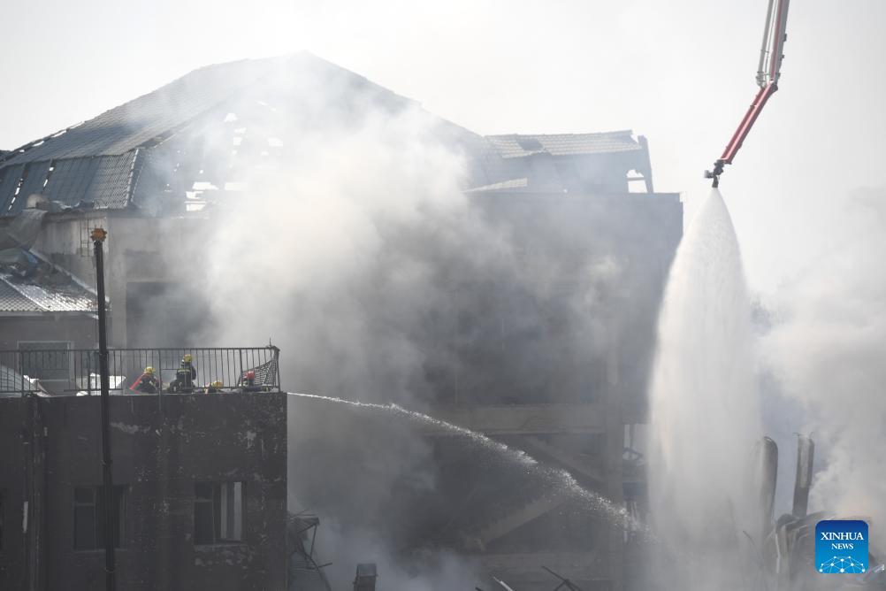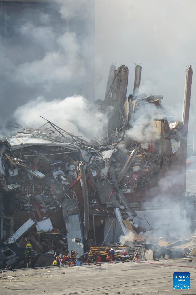 Rescuers work on the site of an explosion in Yanjiao of Sanhe City, north China's Hebei Province, March 13, 2024. (Xinhua/Zhang Xiao)
