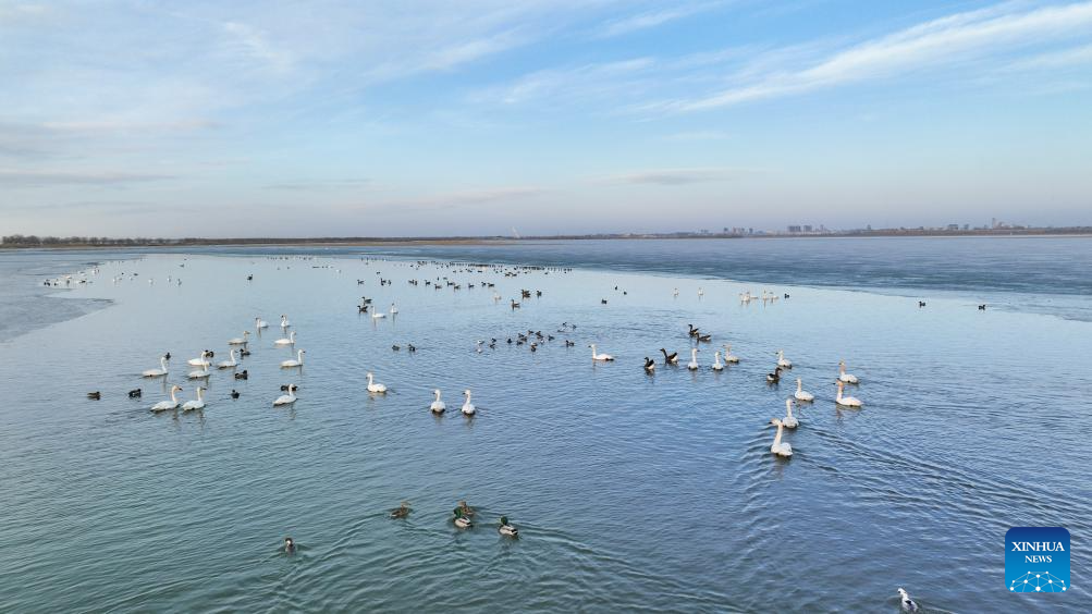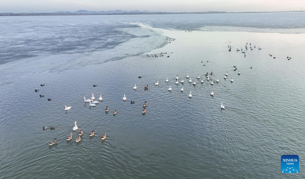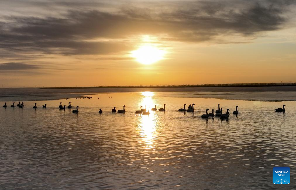Migratory birds seen at Wolong Lake wetland in Kangping County, China's Liaoning