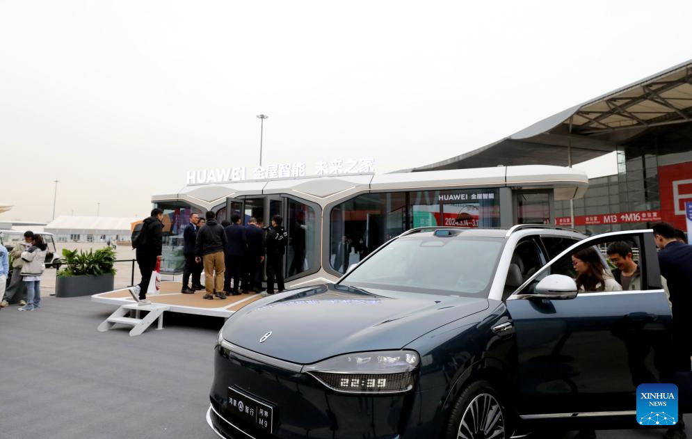 This photo taken on March 14, 2024 shows Huawei's display area of smart home during the 2024 Appliance & Electronics World Expo (AWE2024) in east China's Shanghai. With the theme of "Smartize the Future", the AWE2024 kicked off here on Thursday. The world's leading brands in the field of home appliances and consumer electronics gathered at the expo to showcase their latest innovations. (Xinhua/Fang Zhe)