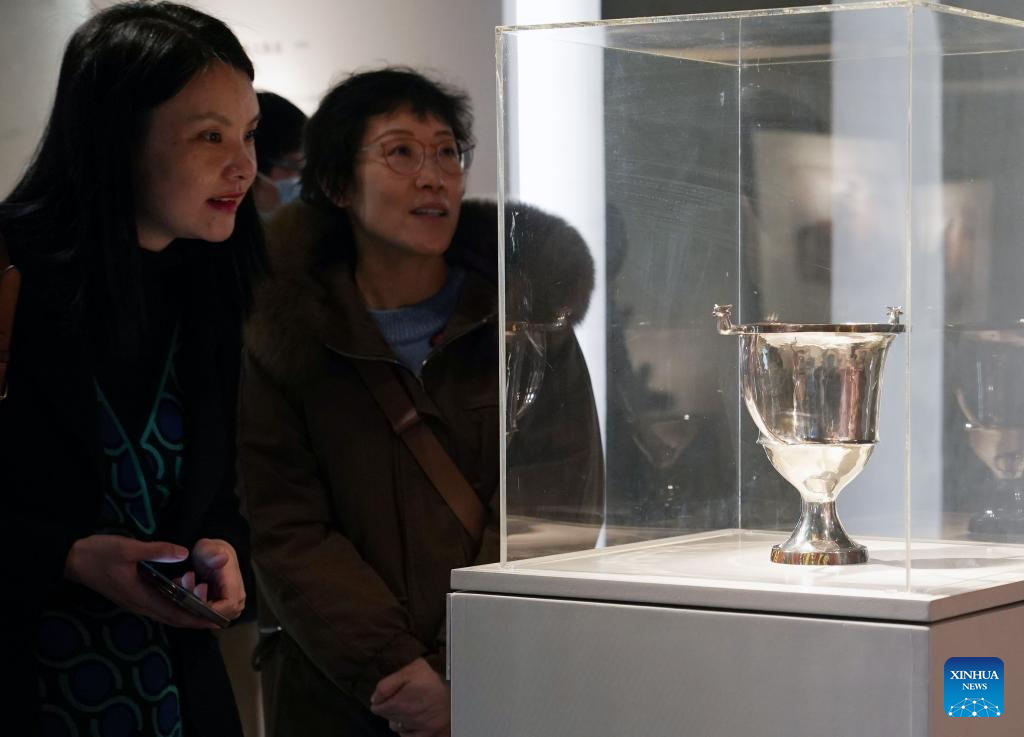 Journalists view an exhibit at the Liuli China Museum in Shanghai, east China, March 14, 2024. (Xinhua/Liu Ying)