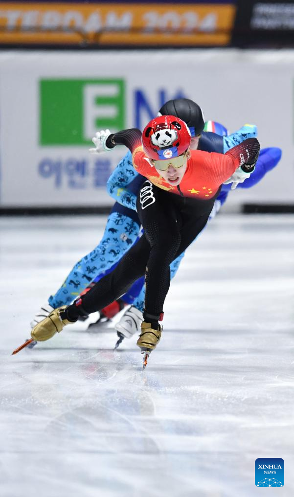 Lin Xiaojun of China competes during the men's 500m Final A at the ISU World Short Track Speed Skating Championships 2024 in Rotterdam, the Netherlands, March 16, 2024. (Xinhua/Lian Yi)