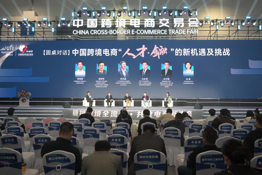 This photo taken on March 18, 2024 shows a forum of the 4th China Cross-border E-commerce Trade Fair in Fuzhou, southeast China's Fujian Province. (Xinhua/Lin Shanchuan)