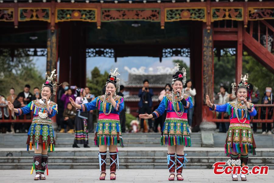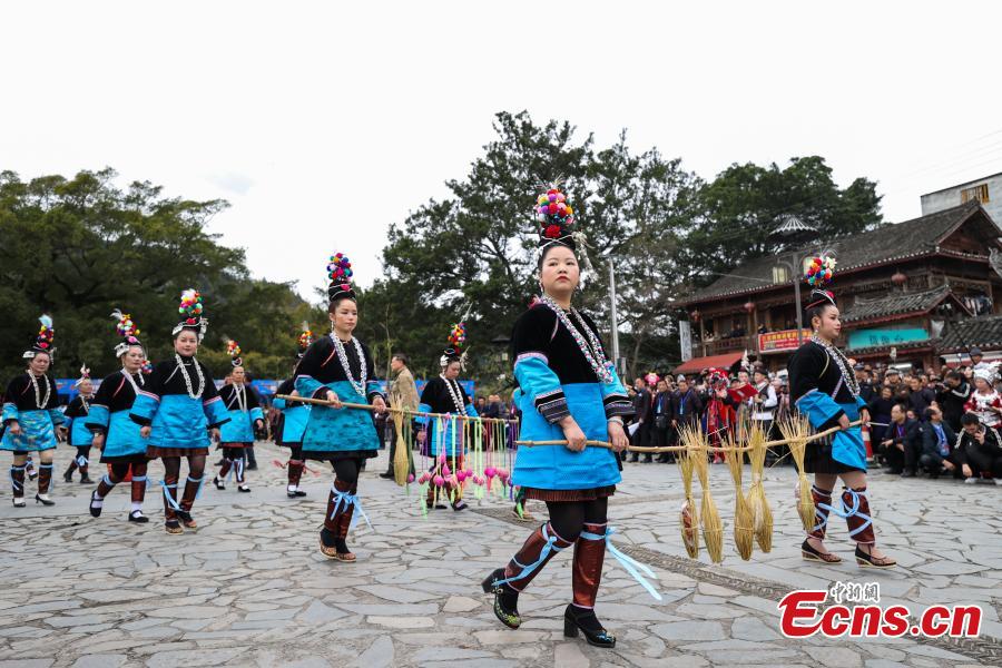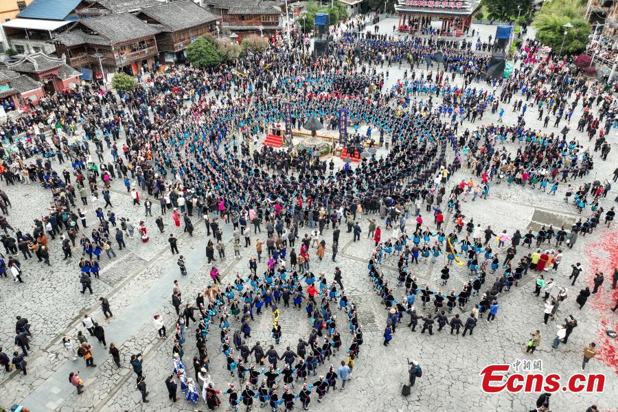 People of Dong ethnic group gather to worship their ancestor Sama during the Sama Festival in Sanbao Dong Village of Rongjiang County, Qiandongnan Miao and Dong Autonomous Prefecture, southwest China's Guizhou Province, March 18, 2024. (Photo: China News Service/Qu Honglun)