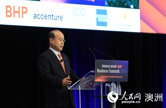 Chinese Ambassador to Australia Xiao Qian delivers a keynote address at the ninth annual Financial Review Business Summit in Sydney on March 11, 2024. (Photo/He Ji)