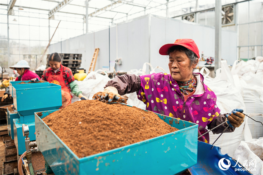 Workers cultivate early-season rice seedlings at an intelligent seedling breeding center in Hengshi town, Nankang district, Ganzhou, east China's Jiangxi Province. (People's Daily Online/Zhu Haipeng)