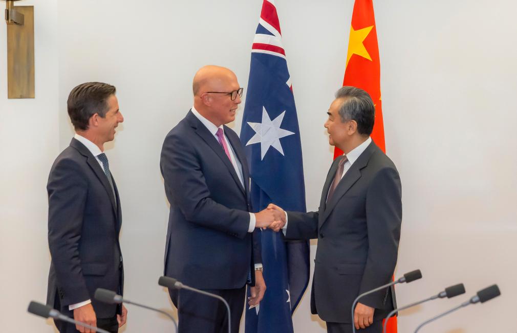 Welcoming Wang's visit to Australia, Dutton and the opposition's foreign affairs spokesperson, Simon Birmingham, said the Australian Opposition is willing to strengthen communication with the Chinese side, enhance understanding, properly handle differences, deepen cooperation, and promote the further development of Australia-China relations.