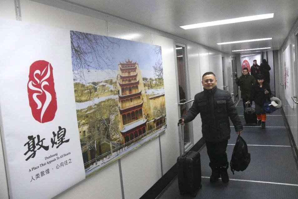 Passengers taking the first chartered tourist flight from Jakarta, Indonesia to Dunhuang, northwest China's Gansu province arrive at the Dunhuang Mogao International Airport, Dec. 24, 2023. (People's Daily Online/Zhang Xiaoliang)