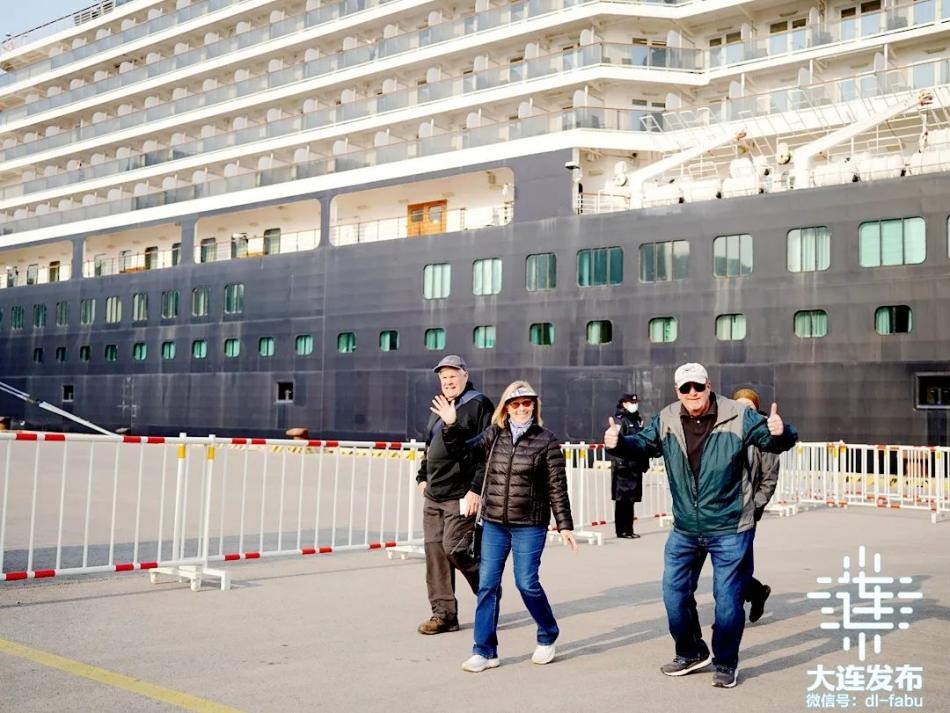 Foreign tourists taking the international cruise ship Zuiderdam arrive in Dalian, northeast China's Liaoning province, March 10. (Photo from the information office of the Dalian municipal government)