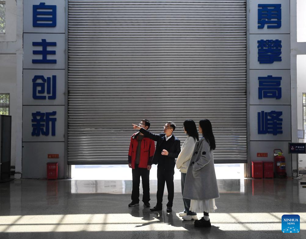 Song Danrong (R), chief designer of Linglong One, inspects with team members on an experimental platform for Linglong One, in Nuclear Power Institute of China in Chengdu, southwest China's Sichuan Province, March 14, 2024. The construction of Linglong One in Hainan Province has gone smoothly. (Xinhua/Liu Kun)