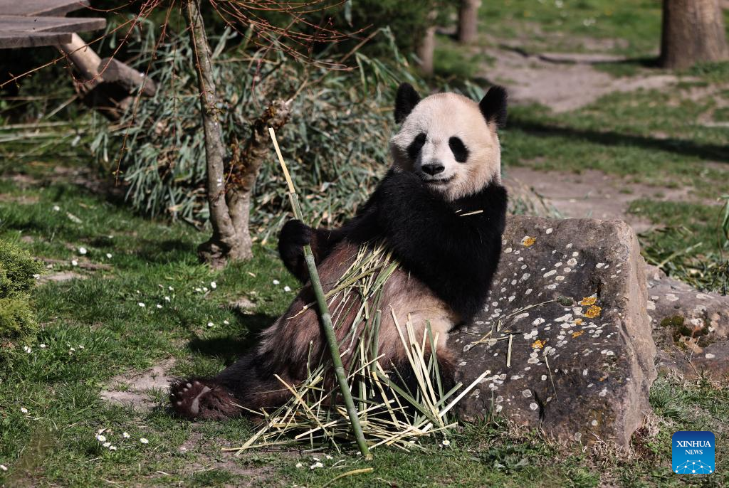 Giant panda Huan Huan is seen at the Beauval Zoo in Saint-Aignan, France, March 22, 2024. (Xinhua/Gao Jing)