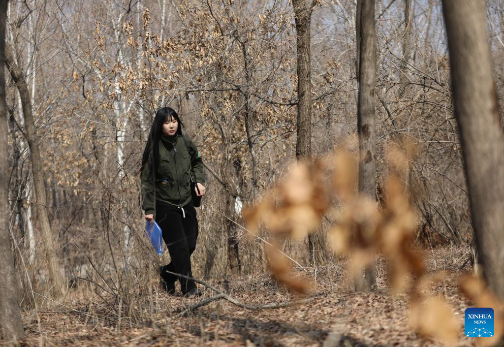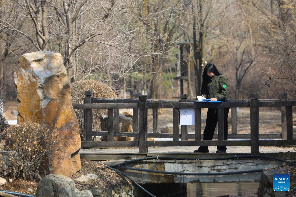 Meng Die takes records of wild birds in Shenyang, northeast China's Liaoning Province, March 23, 2024. (Xinhua/Yang Qing)
