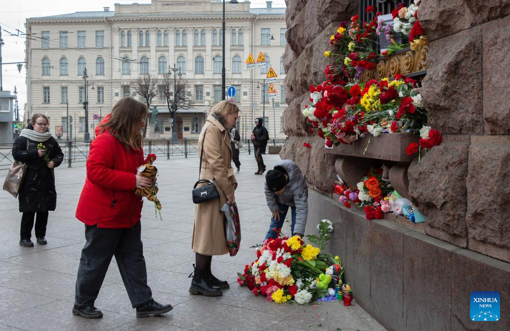People mourn for victims killed in Moscow terrorist attack in St. Petersburg