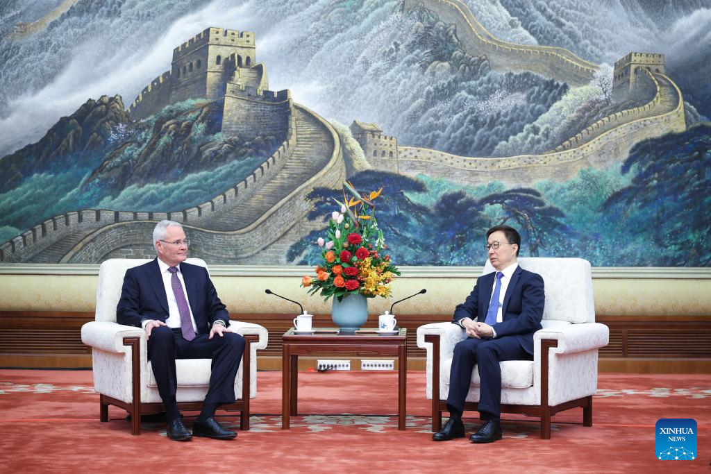 BEIJING, March 25 (Xinhua) -- Chinese Vice President Han Zheng met separately with ExxonMobil CEO Darren Woods and AstraZeneca CEO Pascal Soriot on Monday in Beijing.