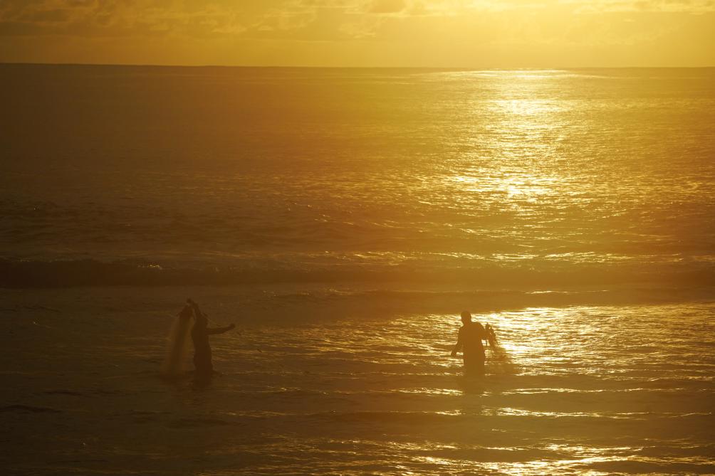 People use fishing nets to catch seafood in the sea in the Republic of Nauru, Jan. 18, 2024. (Xinhua/Wang Shen)