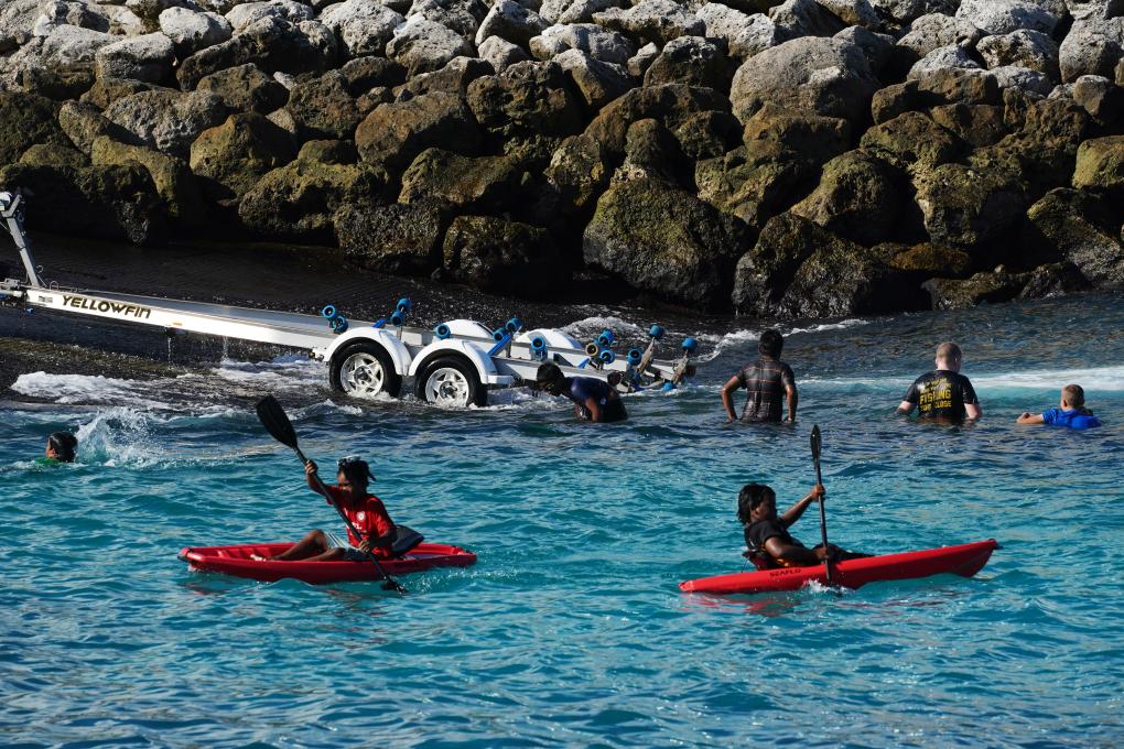 People enjoy leisure time in a bay in the Republic of Nauru, Jan. 18, 2024. (Xinhua/Wang Shen)