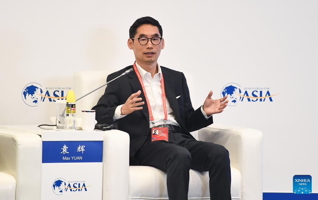 Max Yuan, founder, Chairman and CEO of Xiao-i Corporation, speaks at a panel discussion themed on "How Far is the Breakthrough Moment of Technological Revolution?" during the Boao Forum for Asia (BFA) Annual Conference 2024 in Boao, south China's Hainan Province, March 26, 2024. (Xinhua/Yang Guanyu)