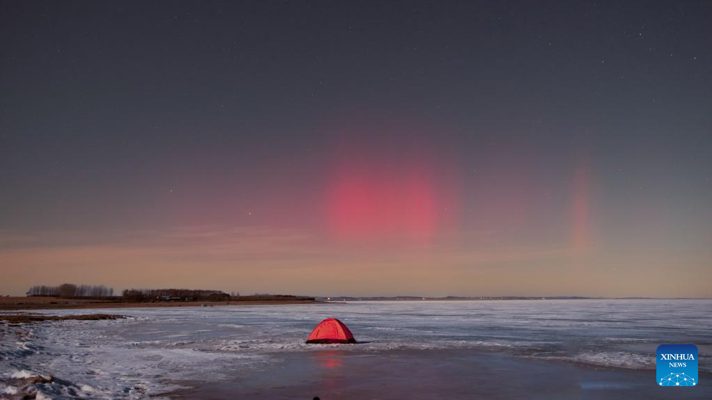 The Aurora Borealis, or the Northern Lights, illuminates the sky above Nehe City in northeast China's Heilongjiang Province, March 25, 2024. (Photo by Liu Wei/Xinhua)