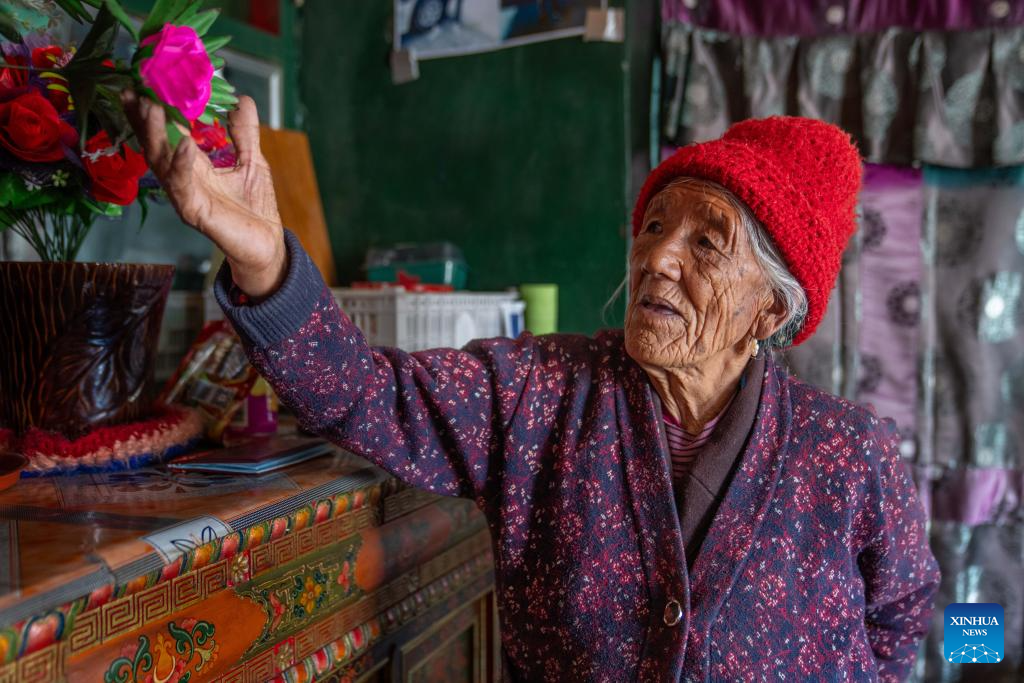 Kelsang Chodron is pictured at home in Changkhyim Village in Qonggyai County of Shannan, southwest China's Xizang Autonomous Region, March 16, 2024. (Xinhua/Tenzing Nima Qadhup)