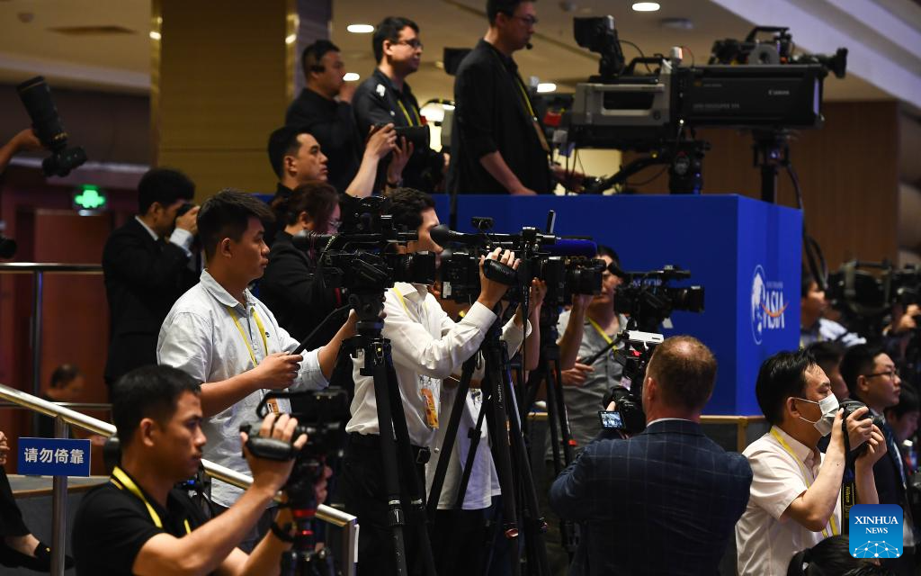 Journalists are seen during the opening ceremony of the Boao Forum for Asia Annual Conference 2024 in Boao, south China's Hainan Province, March 28, 2024. (Xinhua/Yang Guanyu)