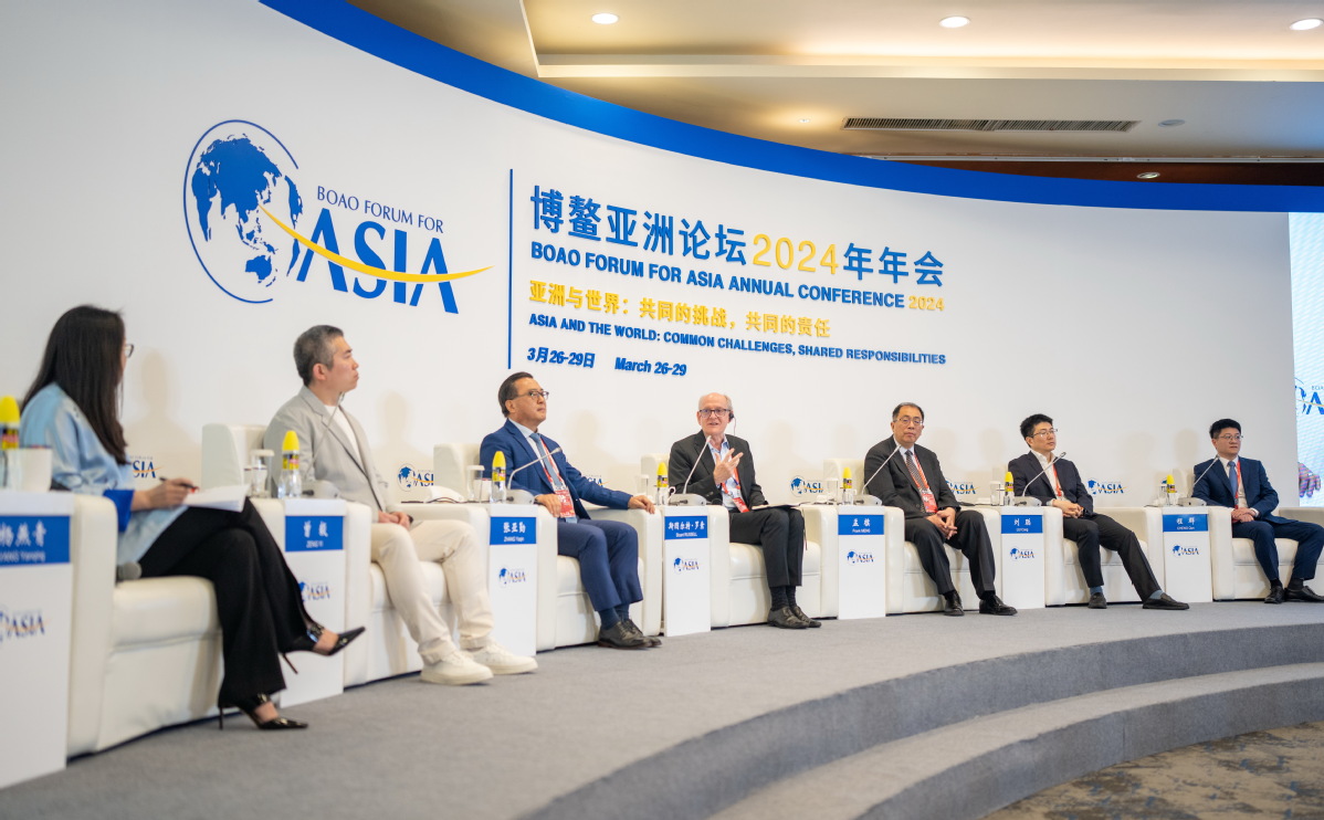Participants discuss AI issues at the ongoing Boao Forum for Asia Annual Conference 2024 in Boao, Hainan province, on Wednesday. FENG YONGBIN/CHINA DAILY