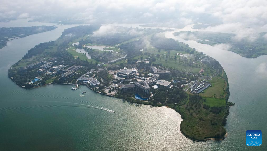 An aerial drone photo taken on March 17, 2024 shows the Boao Forum for Asia (BFA) International Conference Center after renovation in the Boao near-zero carbon demonstration zone in Boao, south China's Hainan Province. The Boao near-zero carbon demonstration zone was put into operation before Boao Forum for Asia (BFA) Annual Conference 2024.
