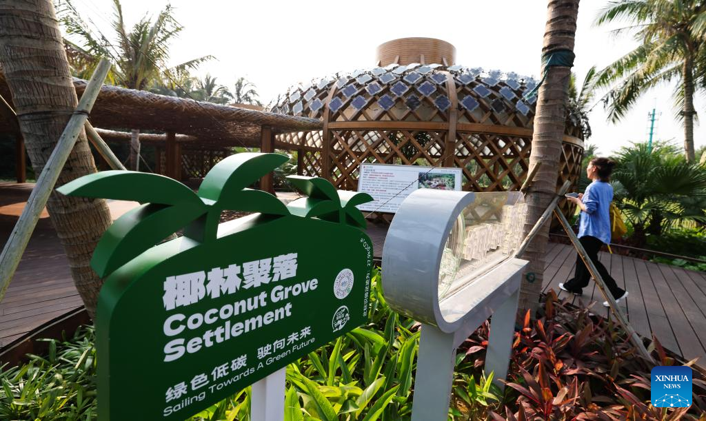 This photo taken on March 25, 2024 shows the Coconut Grove Settlement, an ecological renovation project using 1,518 photovoltaic panels to reduce energy waste, in the Boao near-zero carbon demonstration zone in Boao, south China's Hainan Province. The Boao near-zero carbon demonstration zone was put into operation before Boao Forum for Asia (BFA) Annual Conference 2024.
