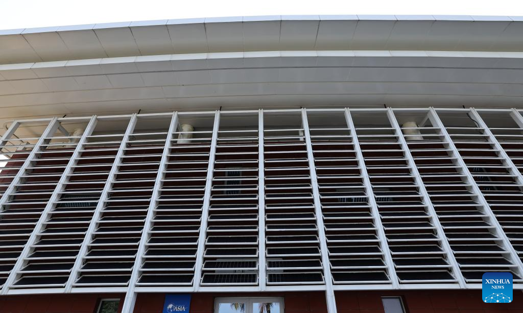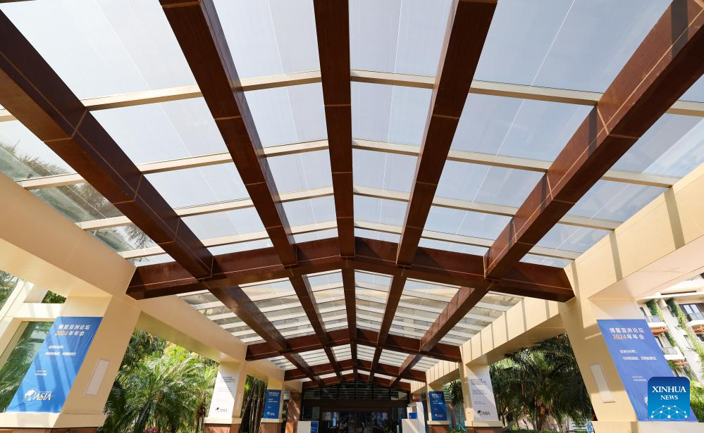 This photo taken on March 25, 2024 shows the photovoltic panels outside the renovated press center in the Boao near-zero carbon demonstration zone in Boao, south China's Hainan Province. The Boao near-zero carbon demonstration zone was put into operation before Boao Forum for Asia (BFA) Annual Conference 2024.